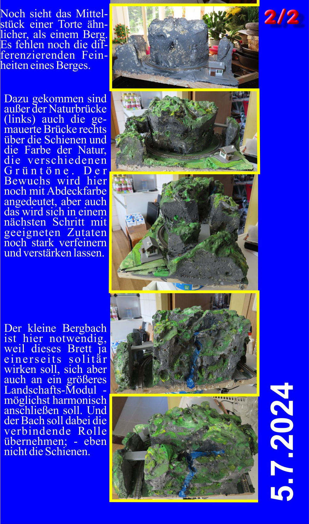 Wie könnte man diese kleine Fläche (30x20cm) so gestalten, dass sie sich harmonisch oben wie unten an die veschiedenen Landschaften einfügt und doch auch ein eigenes Gesicht als Diorama zeigt... - OK, ein Berg? - aber wie, ohne viel zu viele Experimente "für lau"!